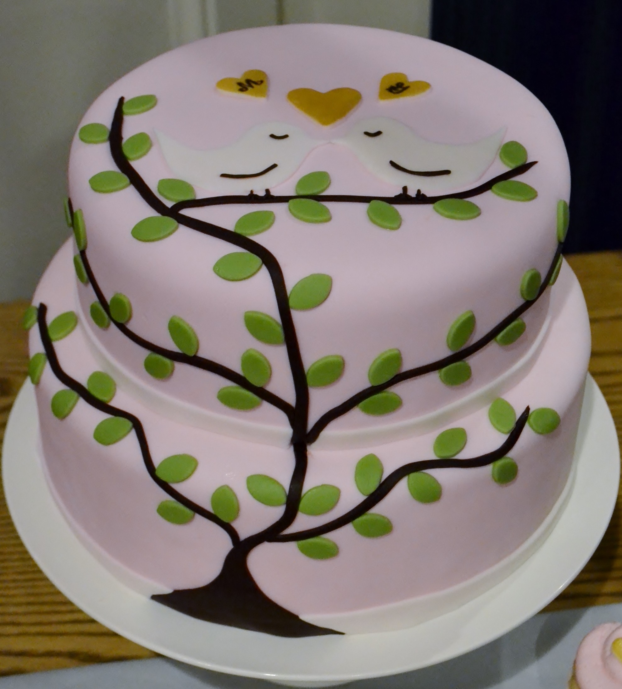 For this engagement cake, the client initially gave me only a color scheme with which to work. I came up with a few designs and sent them over to her. Ultimately, we combined a few elements from each design and came up with the final product. The bride-to-be was gluten intolerant so, instead of doing an entire gluten free cake, I made a few gluten free cupcakes to complement the cake.