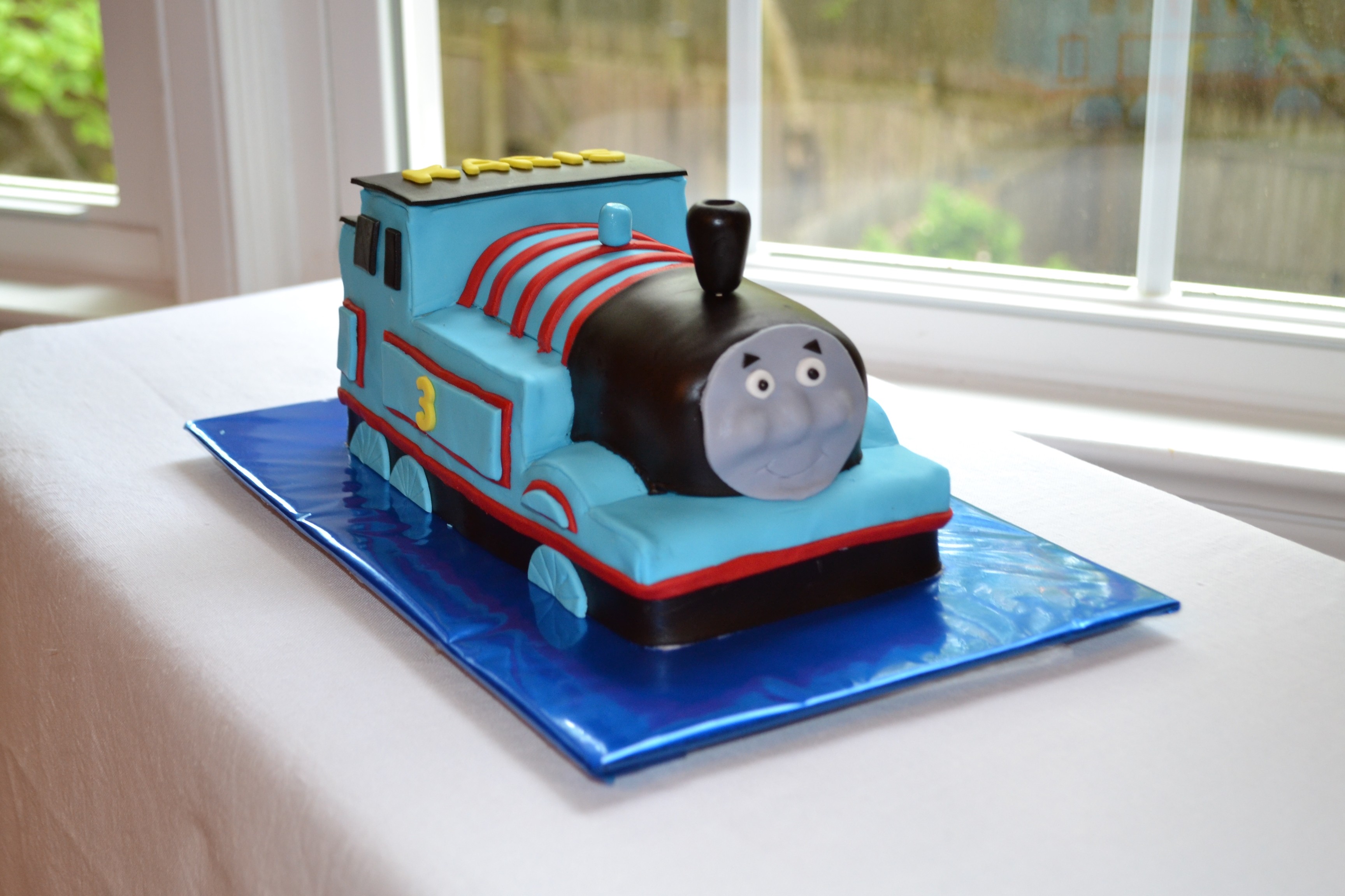 My client for this cake had one request only: A Thomas the Train cake. She gave me free reign to design it anyway I liked and did not have a preference for a tiered vs. carved cake. Because she was having a small party, I decided that a carved cake would be best as I try to stay away from just a simple 8-inch round cake- I just don’t find them very fun or grand. If you are interested in a larger carved cake, I could easily use two batches (or more!) of cake so more guests could be served.