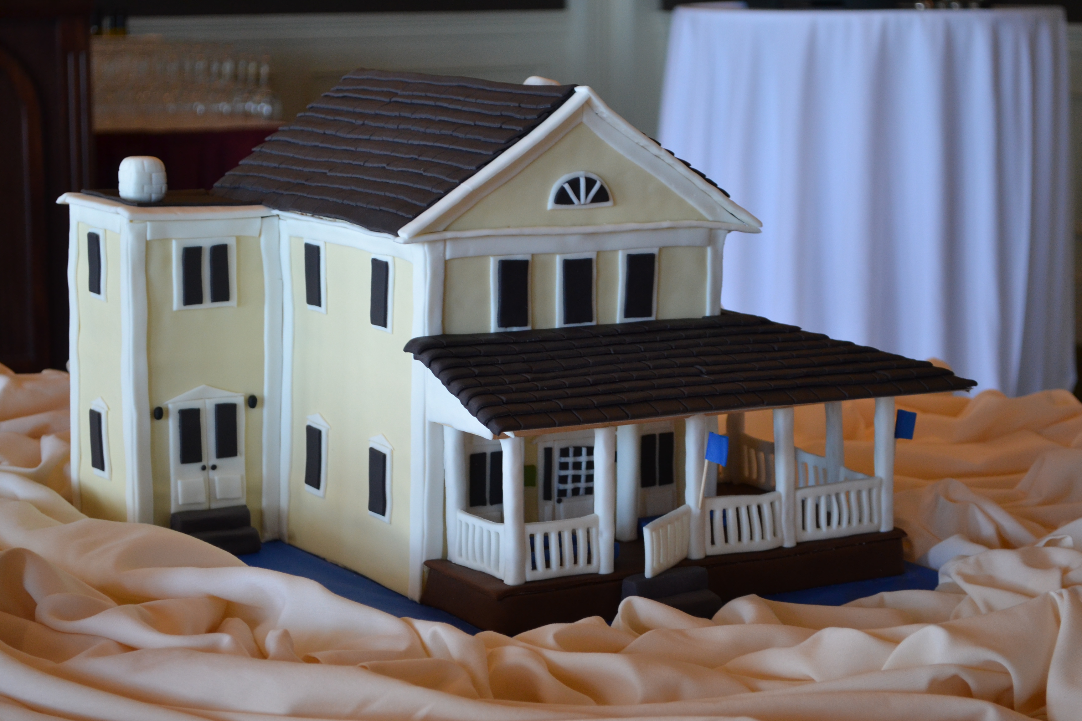 I created this cake for the Country Day School of McLean’s 50th anniversary auction. It is a replica of the original school house which is dated from the early 1900’s. To create the cake, I used several 9 x 13 inch cakes and then carved them to create the shape of the school. I then used fondant and cake to create the front porch.