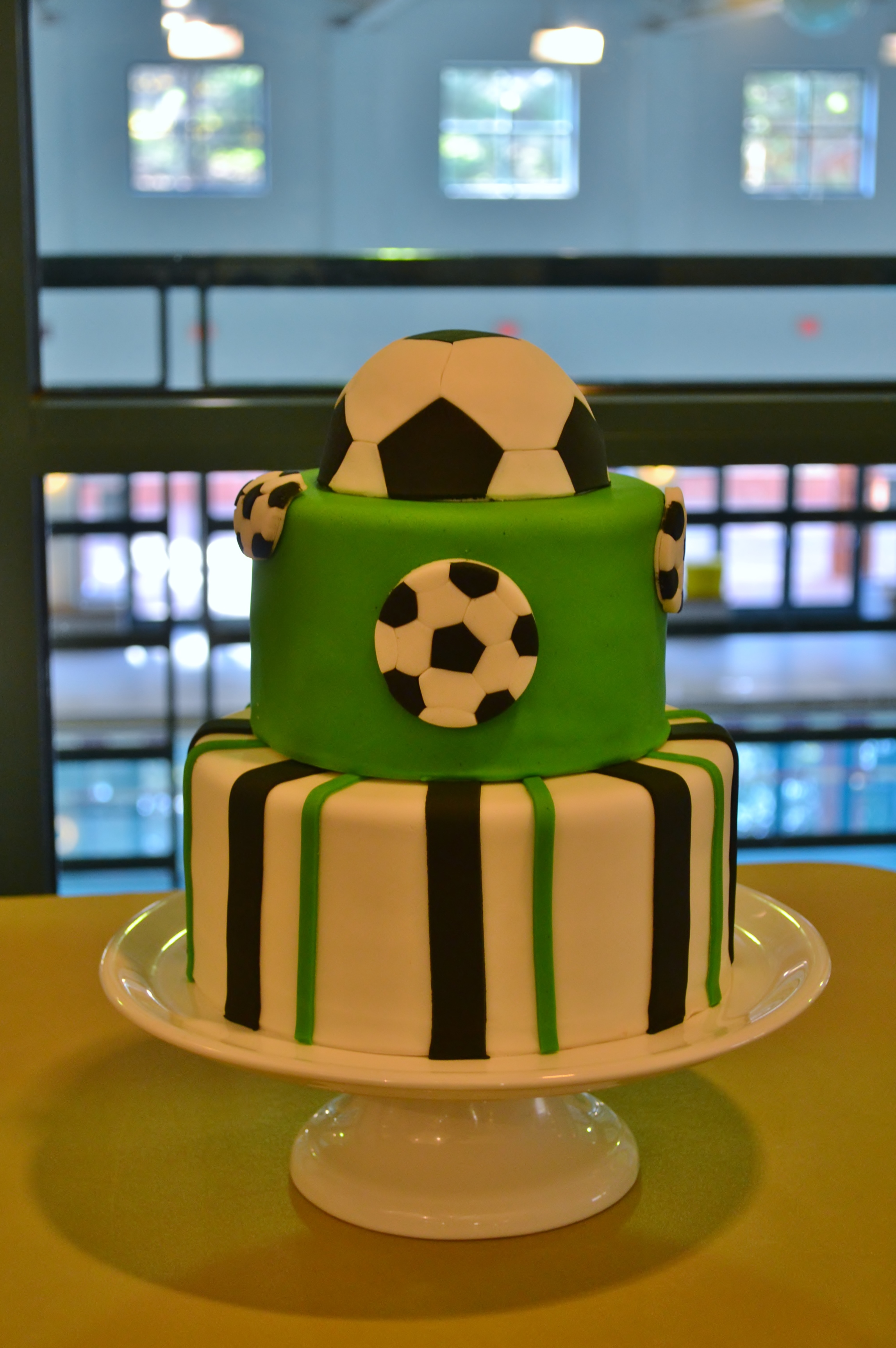 I made this cake for an end of the season soccer party. I used a “ball pan” to create a fully edible soccer ball on the top of the cake.
