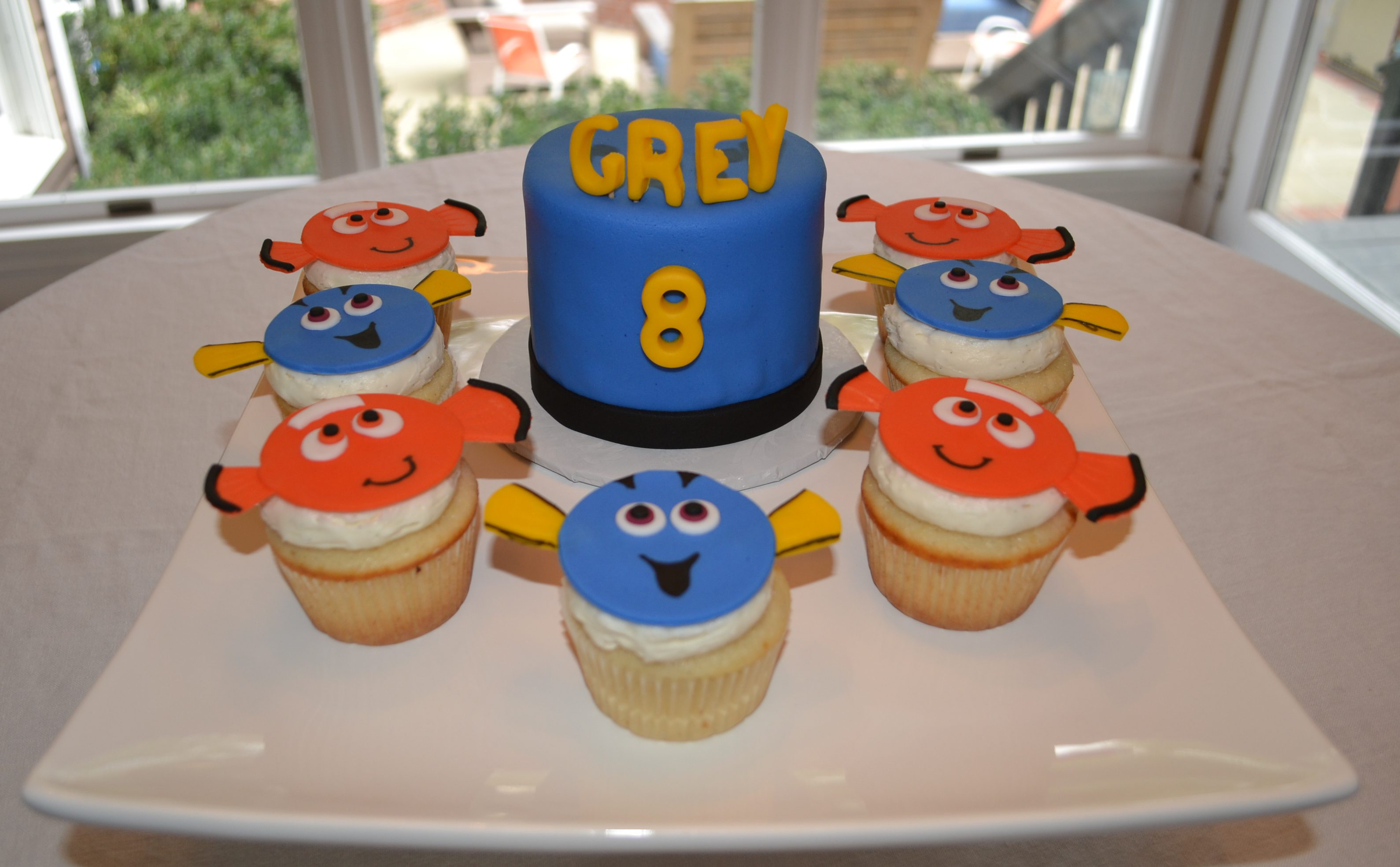 I often get requests for cupcakes at birthday parties because they are so much easier to serve. The one down side, however, is that the birthday boy or girl doesn’t get a “real” cake to celebrate with. One alternative is to provide standard cupcakes for the entire party and then add a 4 inch round cake for the guest of honor.