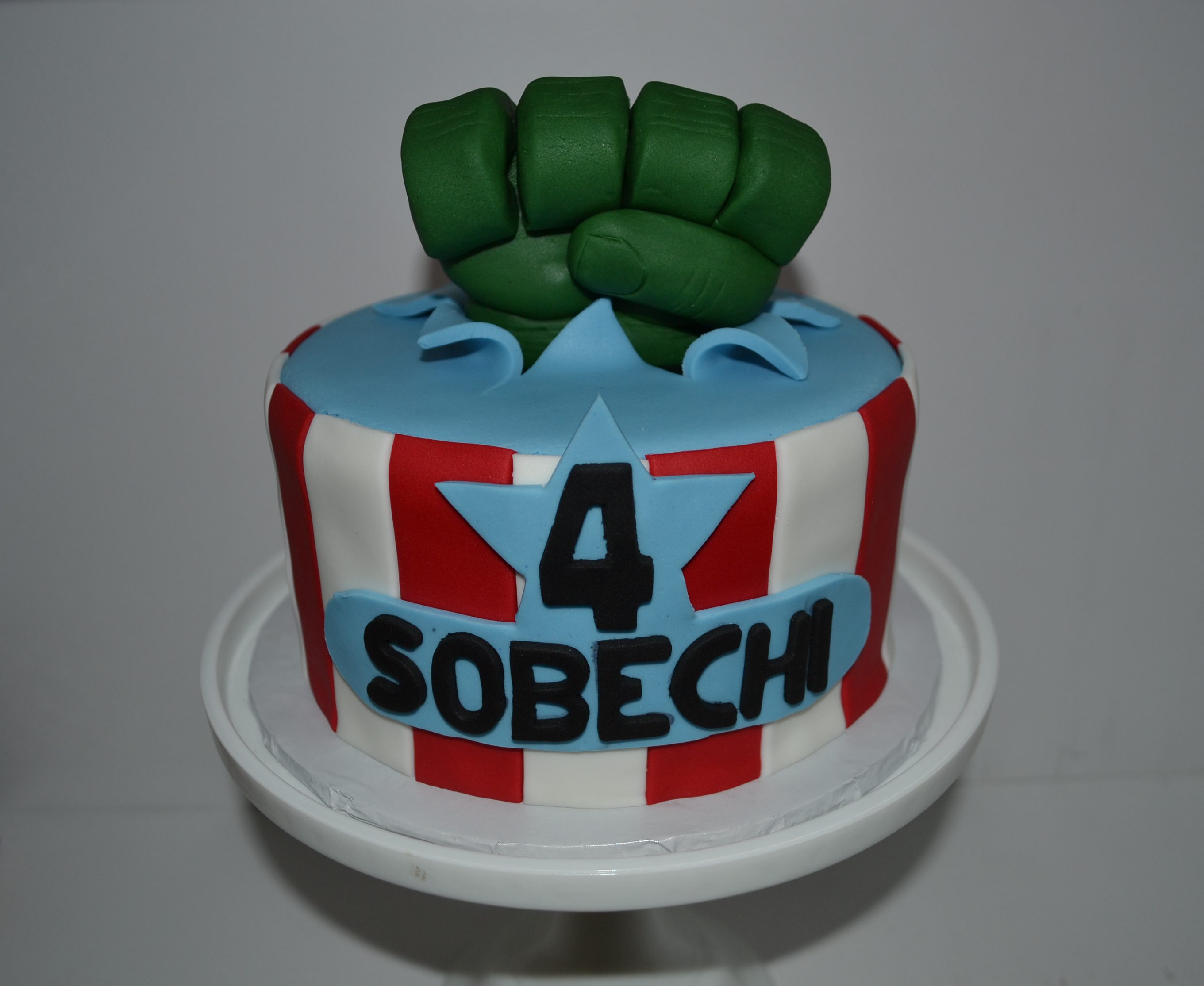 Incredible Hulk Cake Cake Dimensions: (1) 6-in round Serving Size: 8 sensible servings Type: buttercream with fondant accents Event Location: McLean, VA Share this: Click to share on X (Opens in new window) X Click to share on Facebook (Opens in new window) Facebook Click to share on Pinterest (Opens in new window) Pinterest Like Loading... Related