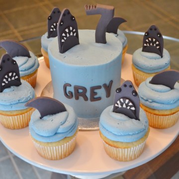 Mini Shark Cake and Cupcakes
